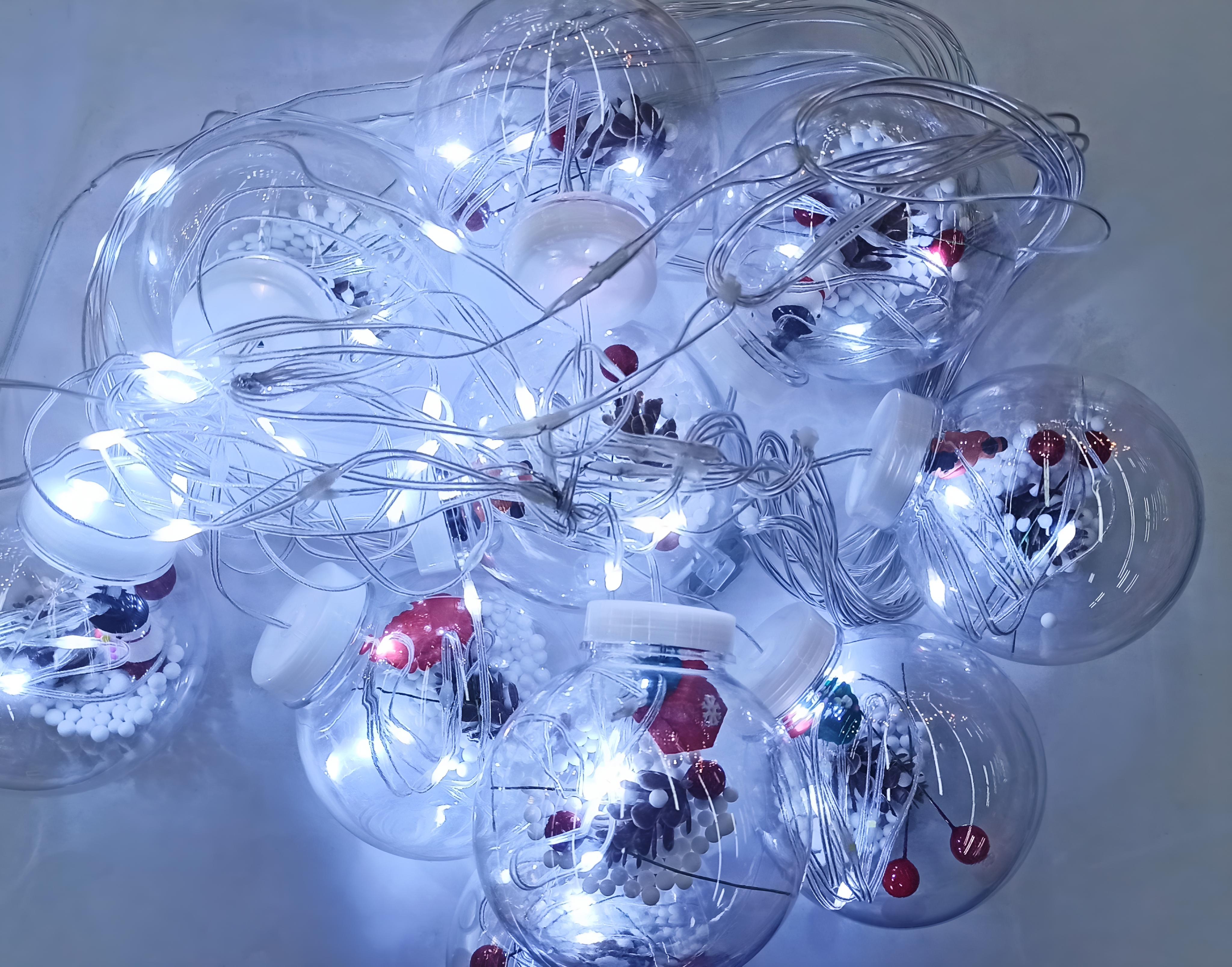 საახალწლო განათება, 10 საშობაო ბურთი, თეთრი ნათება MH-26629