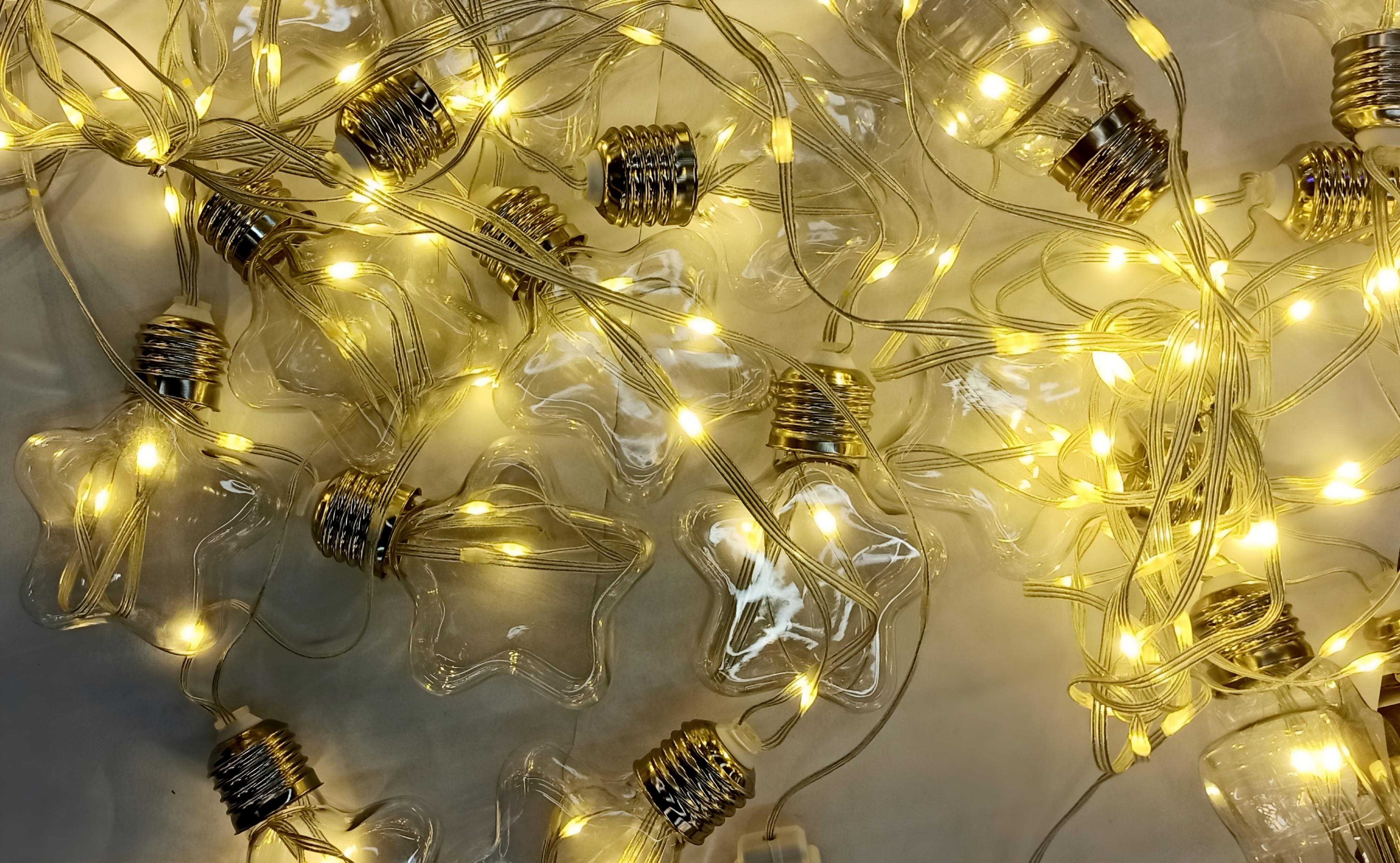 საახალწლო განათება, 5 მეტრი +10 ვარსკვლავი 100 LED SOFTER LINE. თბილი განათება MH-26643