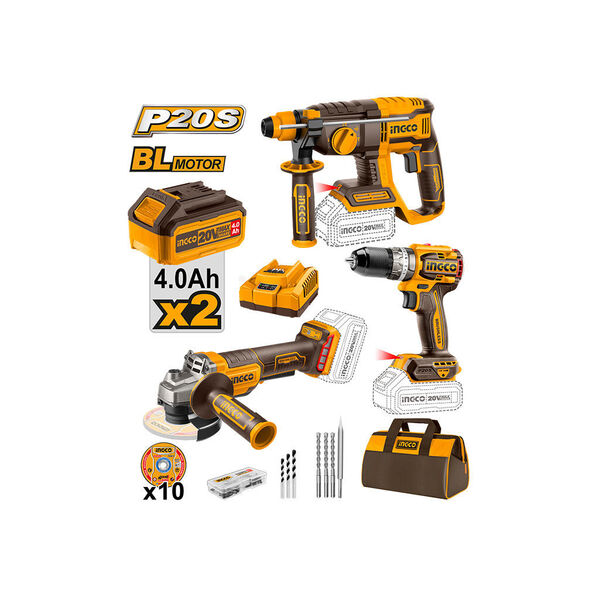 ელექტრო პერფორატორის, კუთხსახეხისა და ხრახნდამჭერის კომპლექტი 3ც-ნი 20V Lithium-Ion (COSLI241198)